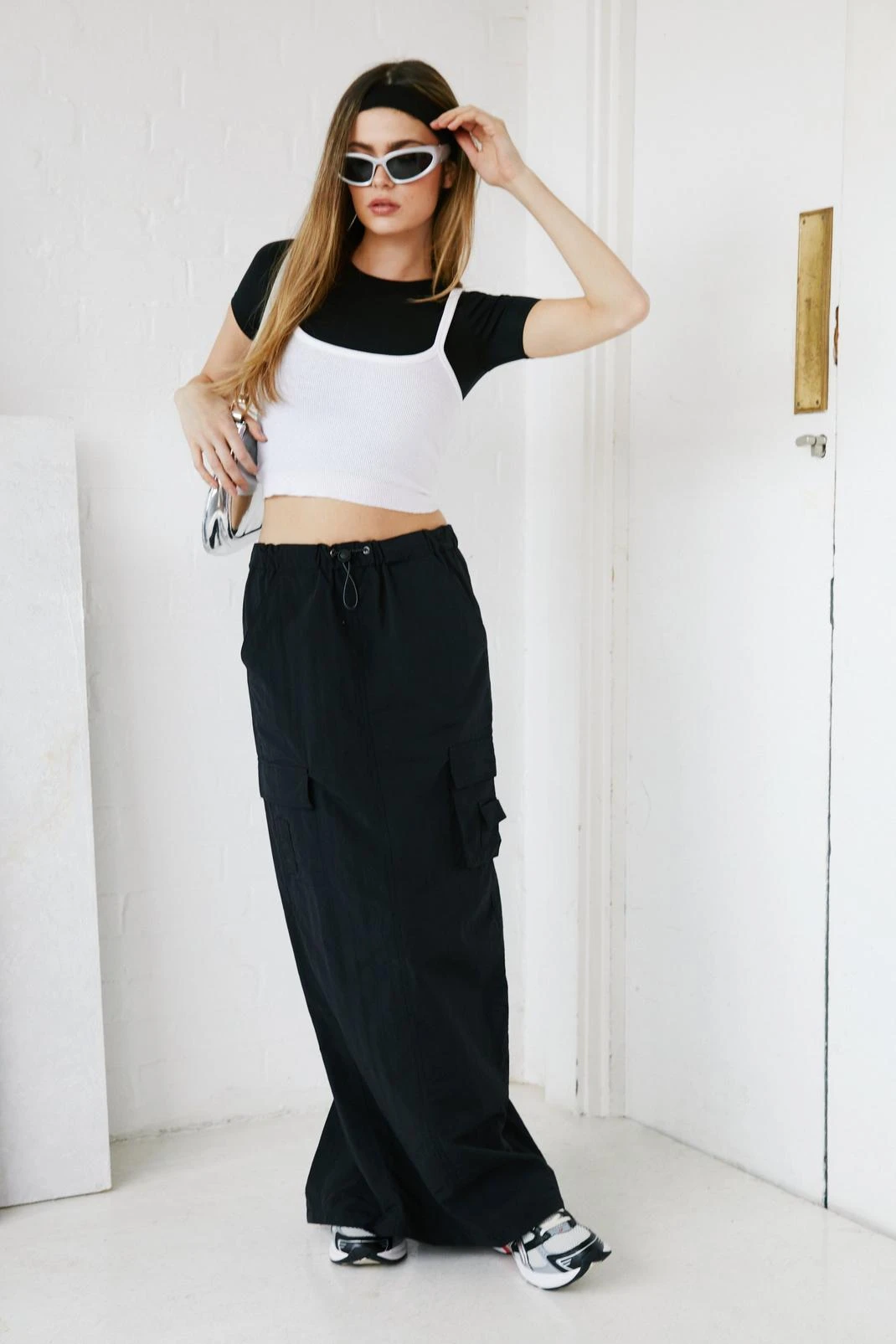 Maximize it. Our plus size maxi skirt will have you feeling super comfy while looking great. Style it with a crop top and bomber jacket for an elevated look.