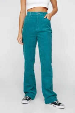 Star of the show. These pants come in corduroy and features a high waisted, flared silhouette, belt loops, zip fly closure, contrasting star design at back, and seam detailing. Style yours with a cropped top and chunky biker boots.