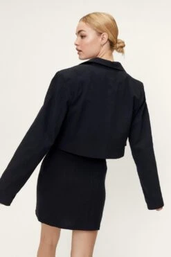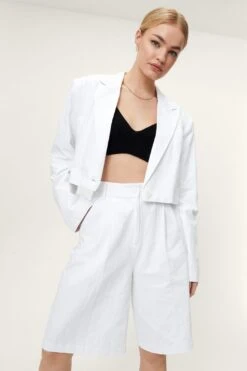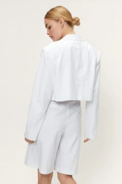 - Cotton Single Breasted Shoulder Padded Cropped Blazer