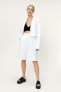 Suits you. Style yours with tailored shorts or a split front mini skirt..