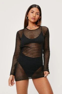 - Crochet Low Back Mini Beach Cover Up Dress