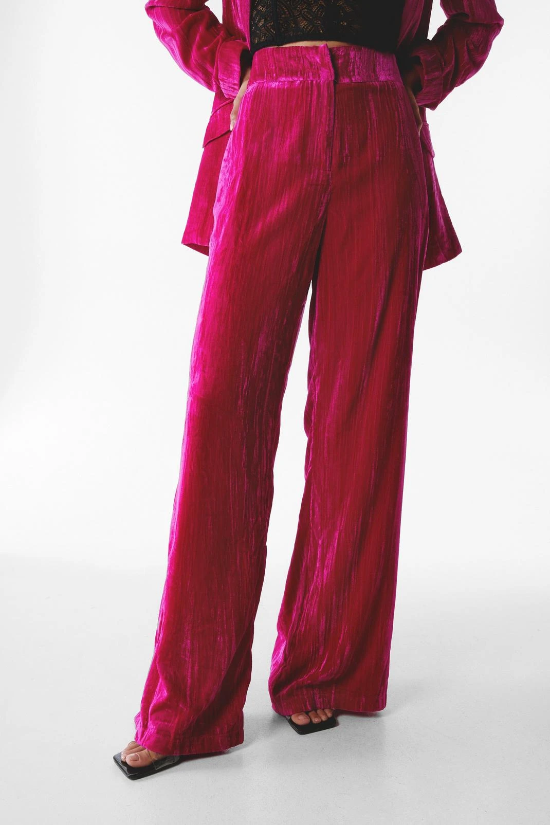 - Style: Crushed Velvet High Waisted Wide Leg Pants