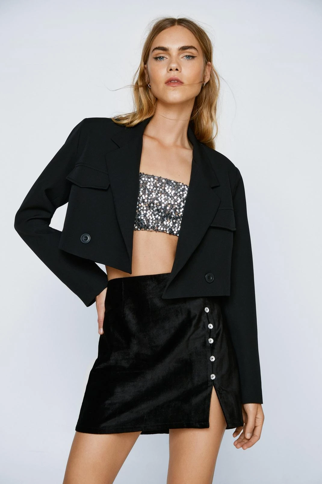 Soft touch. Our velvet pelmet skirt is perfect for hitting the club, happy hour, or that festive family gathering.