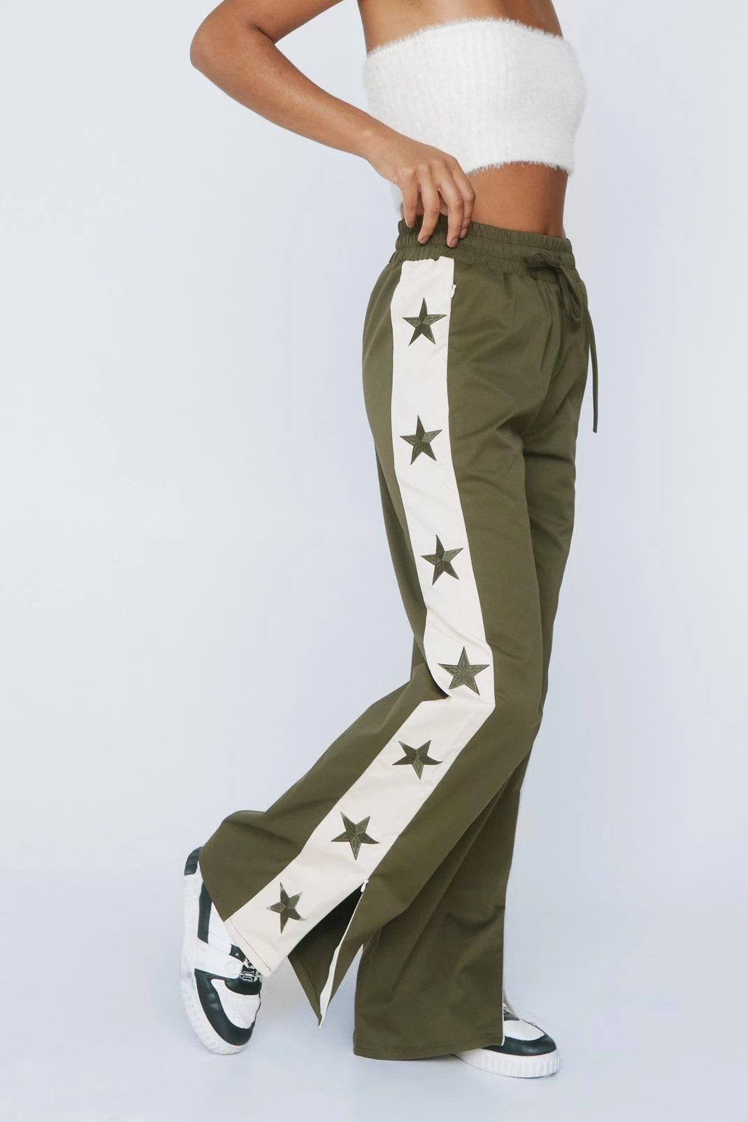 - Embroidered Star Tape Detail Twill Pants