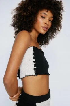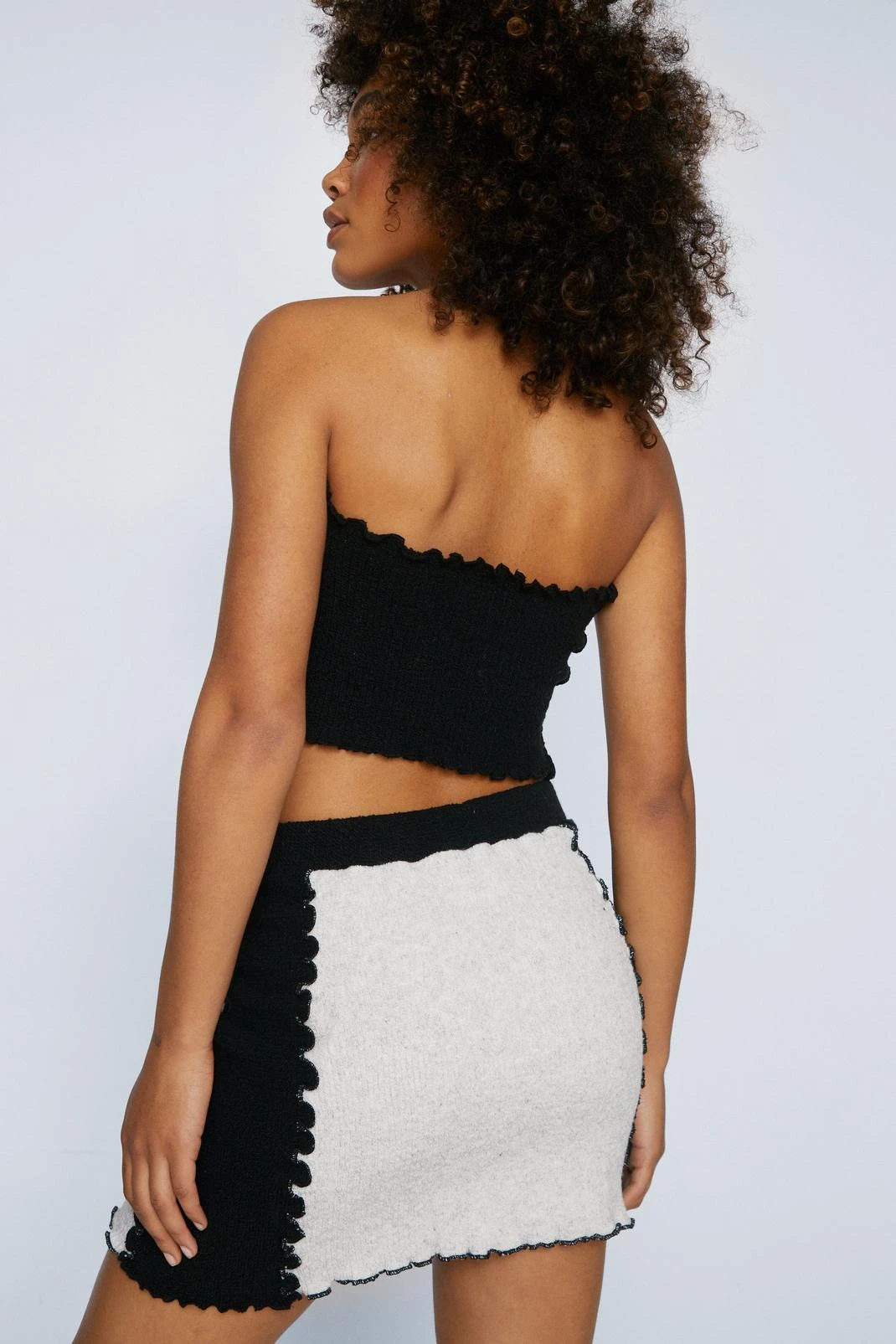 Seams likely. Our exposed seam knitted bandeau pairs well with the coordinating skirt.
