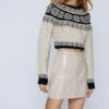 You can sit with us. Have your Malibu moment in our faux leather mini skirt with a flirty feather hem. Pairs perfectly with the matching bandeau and cropped jacket.