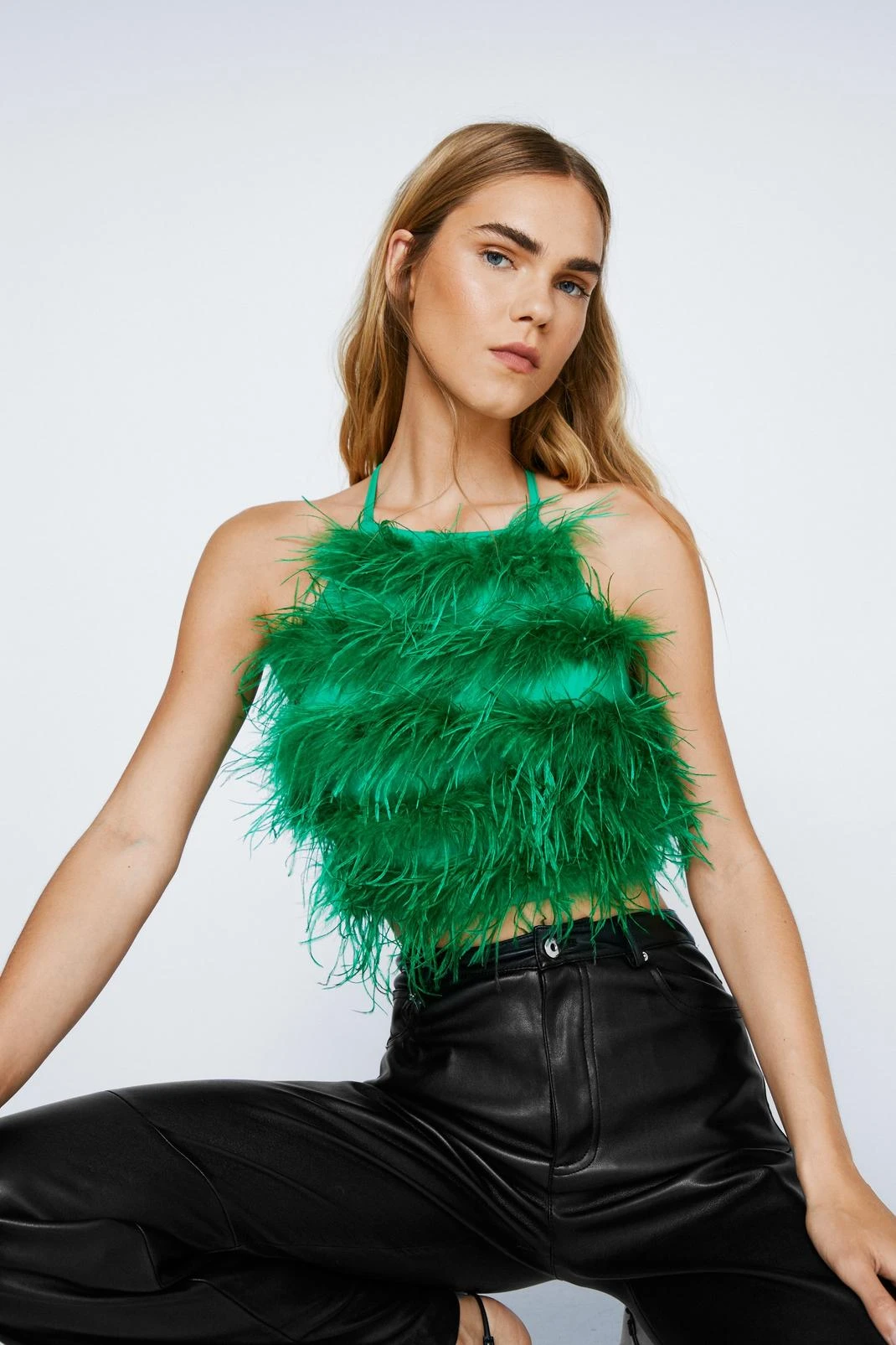 - Feather Halter Neck Crop Top