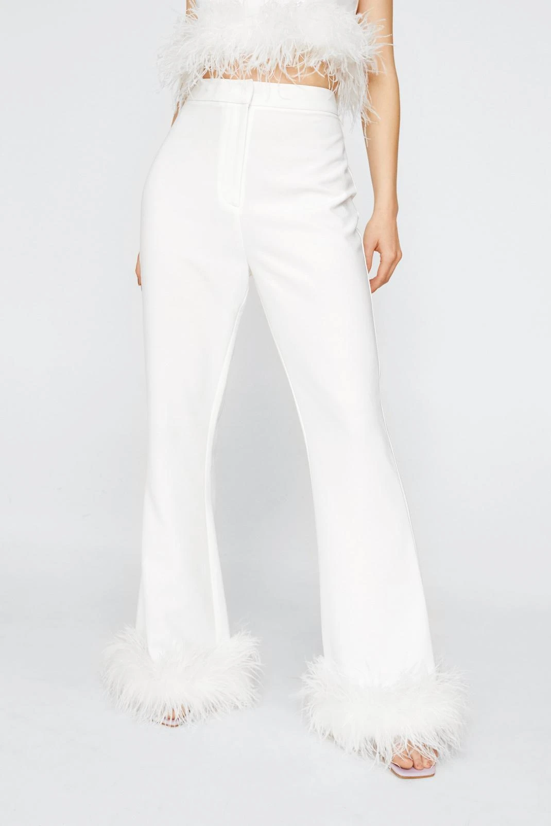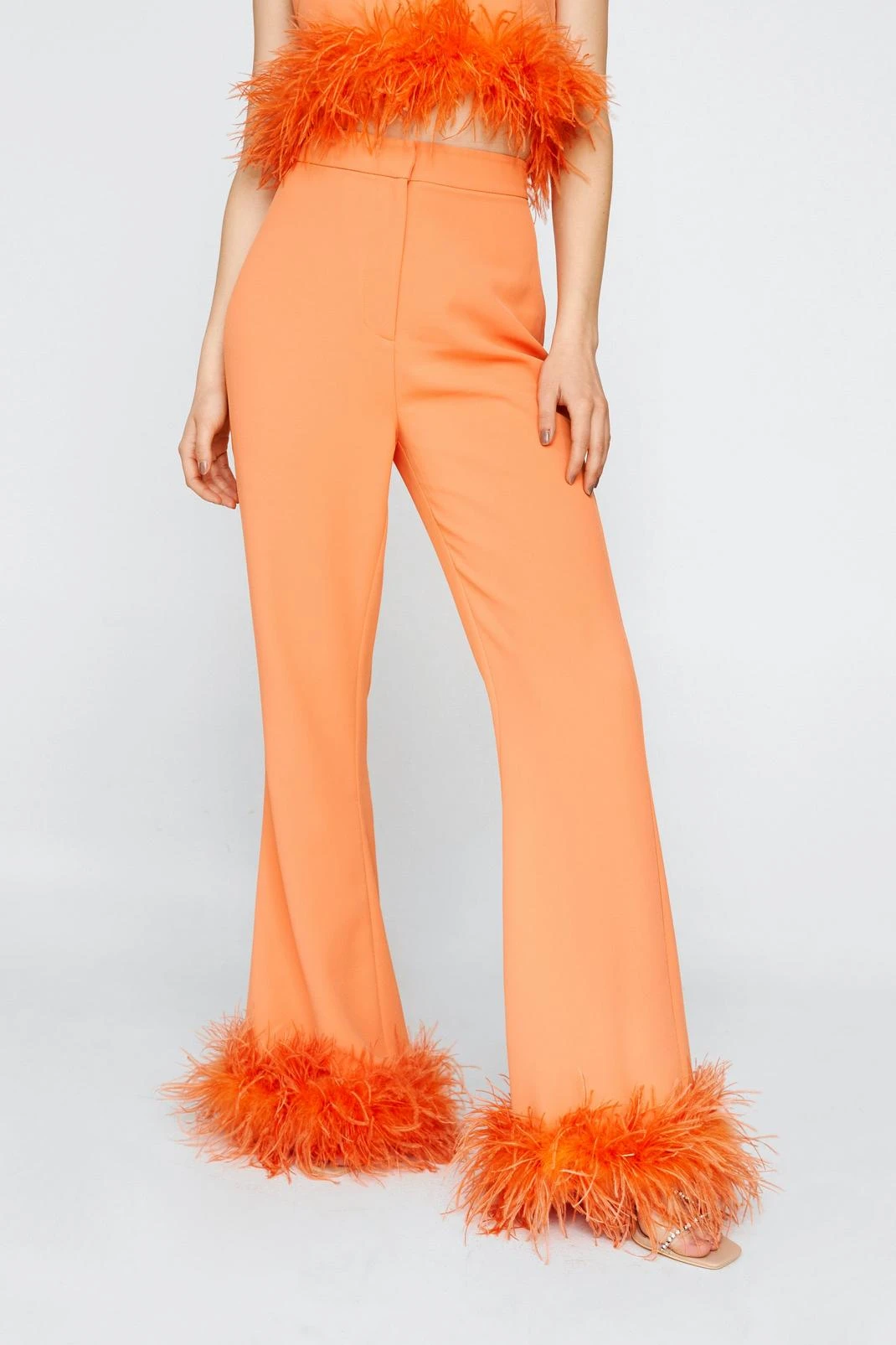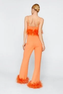 Fabric: 100% Polyester. Ostrich fur trim. Hand wash only.