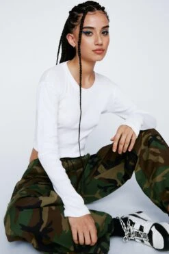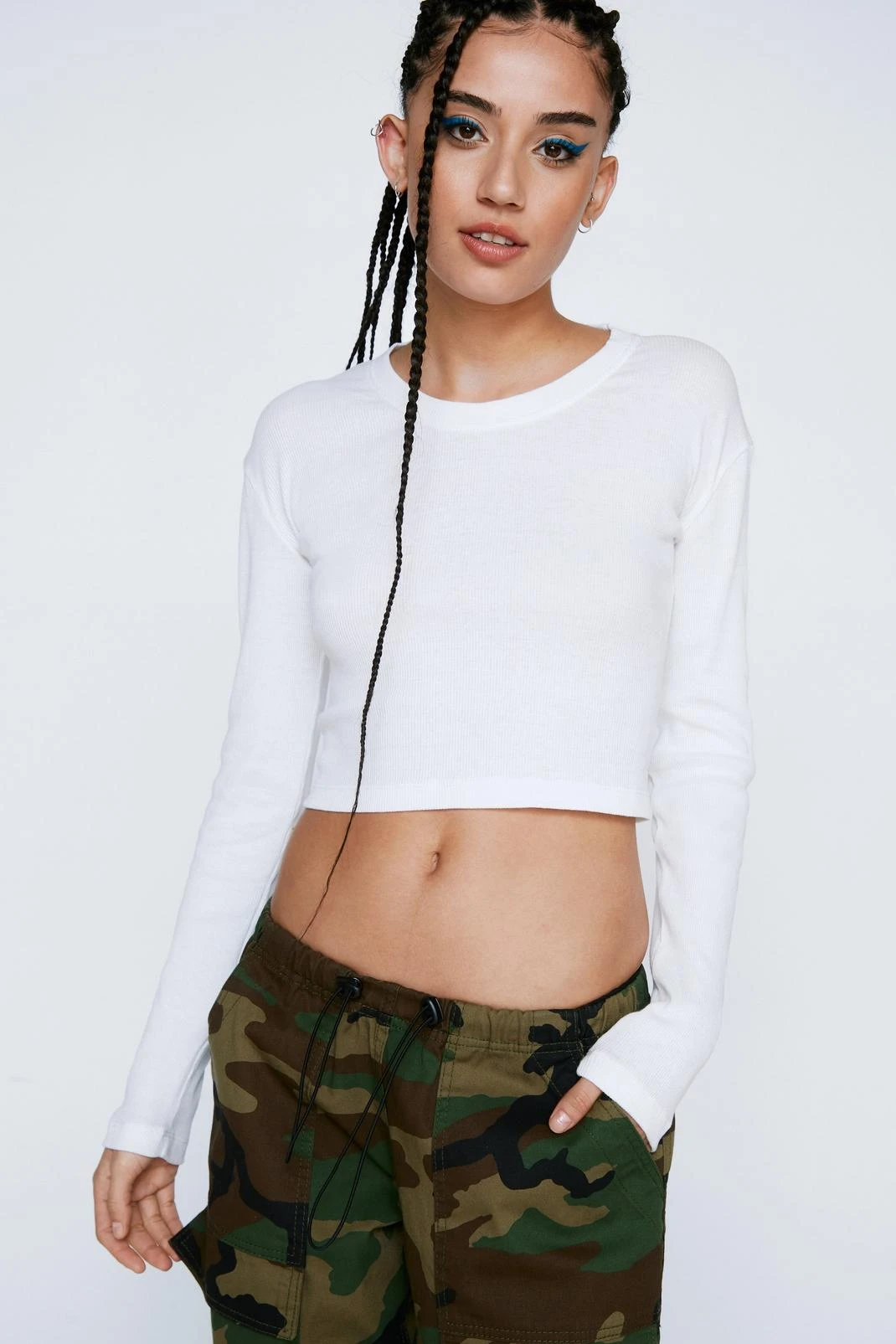 The essentials. Our ribbed fitted t-shirts will have you feeling ready for any eventuality, with their flattering round neck design and long sleeves. Pairs well with coffee catch ups and any bottoms in your closet.