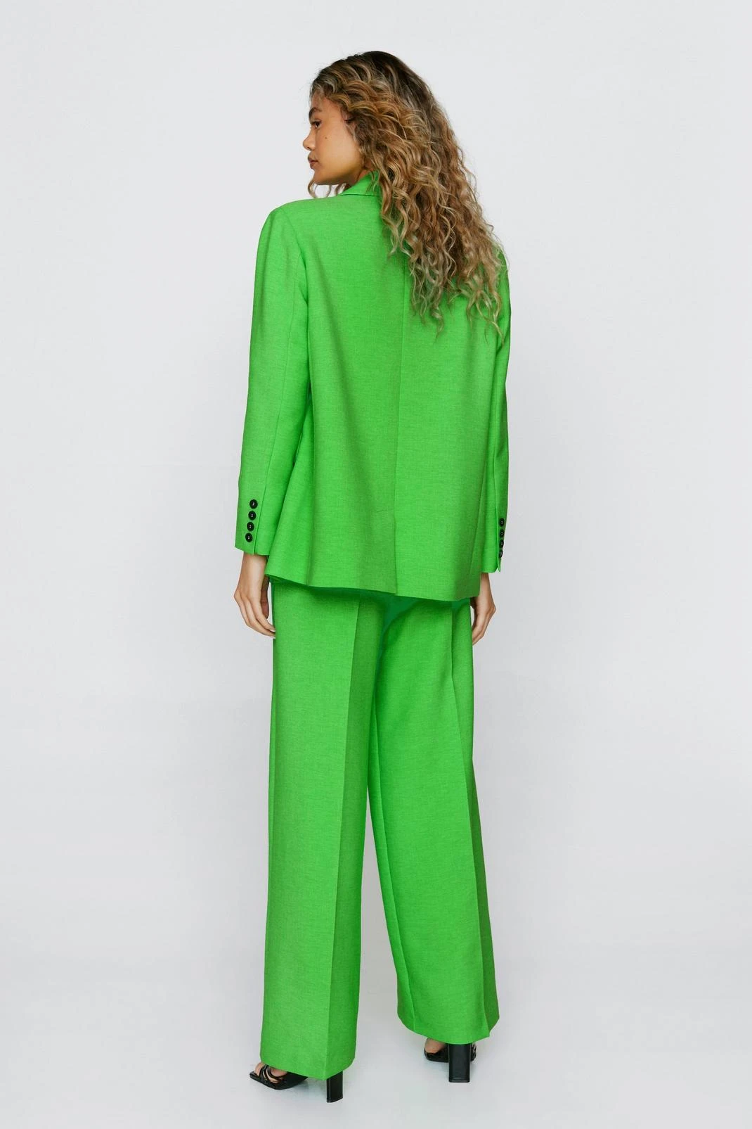 Power dressing. Complete the look and style with the matching oversized blazer, triangle bralette and chunky sneakers.
