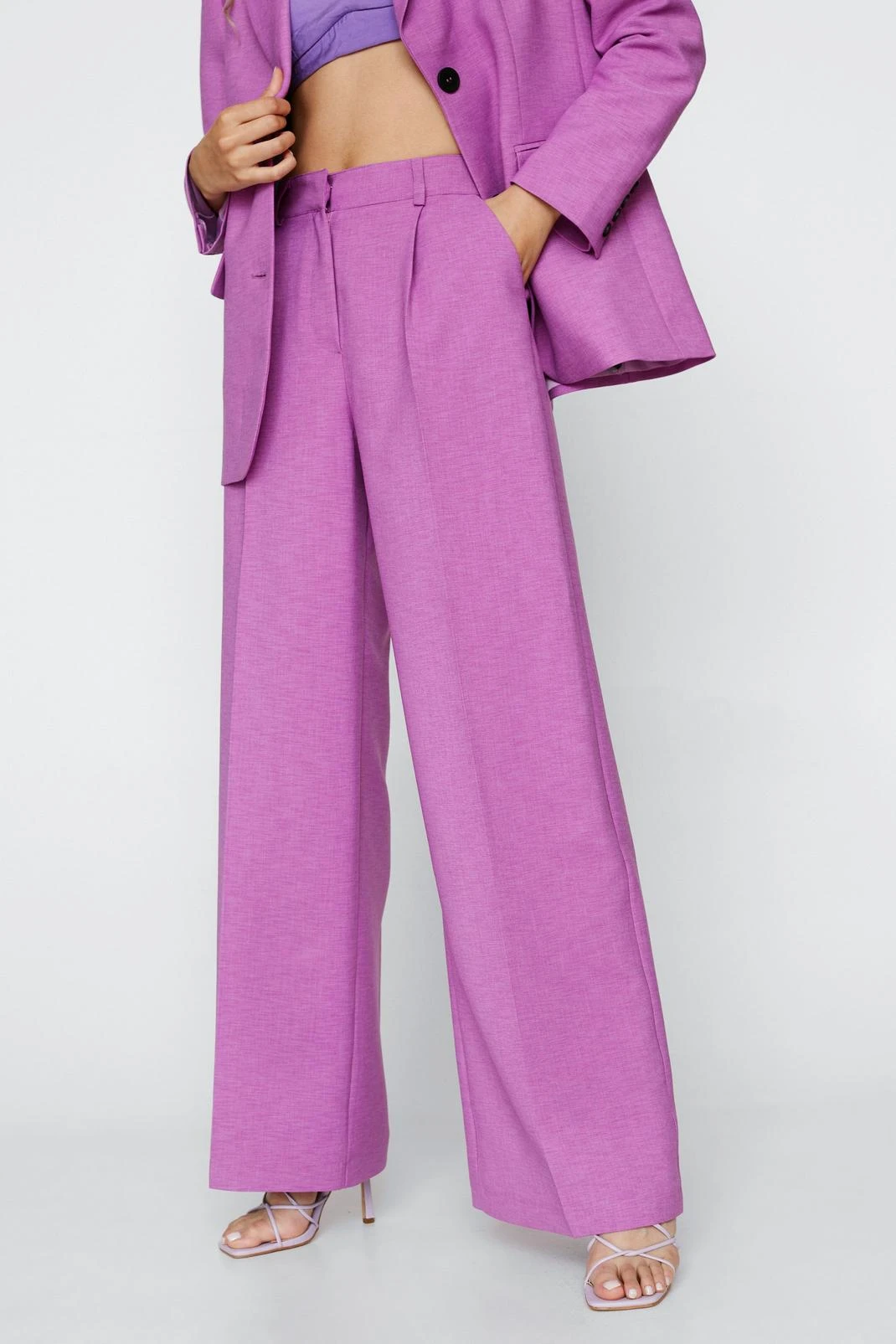 - High Waisted Wide Leg Tailored Pants