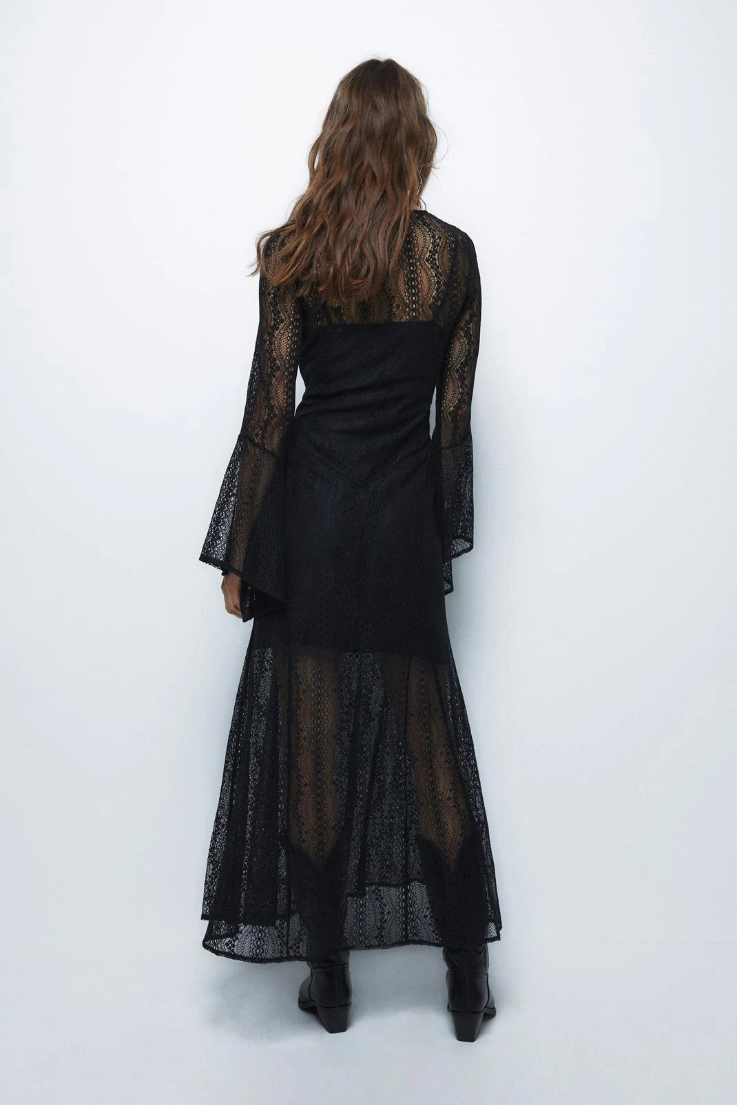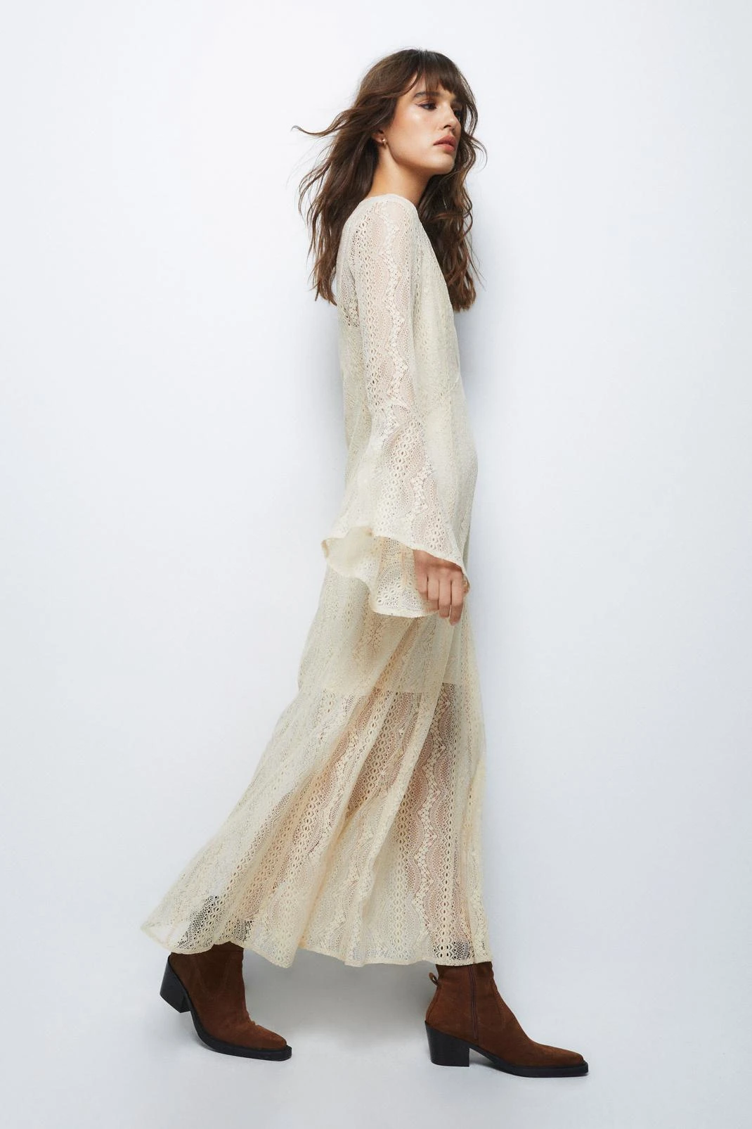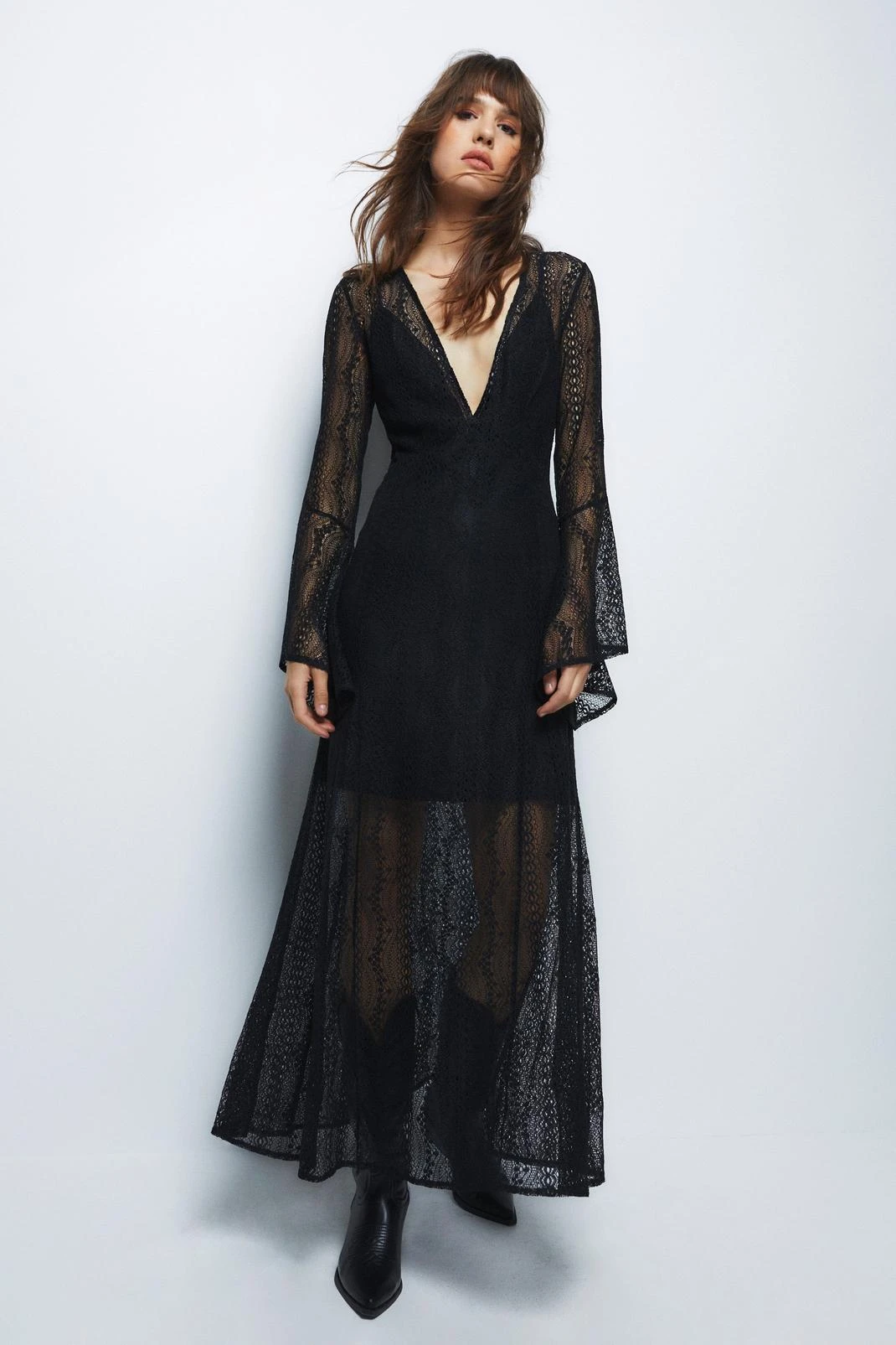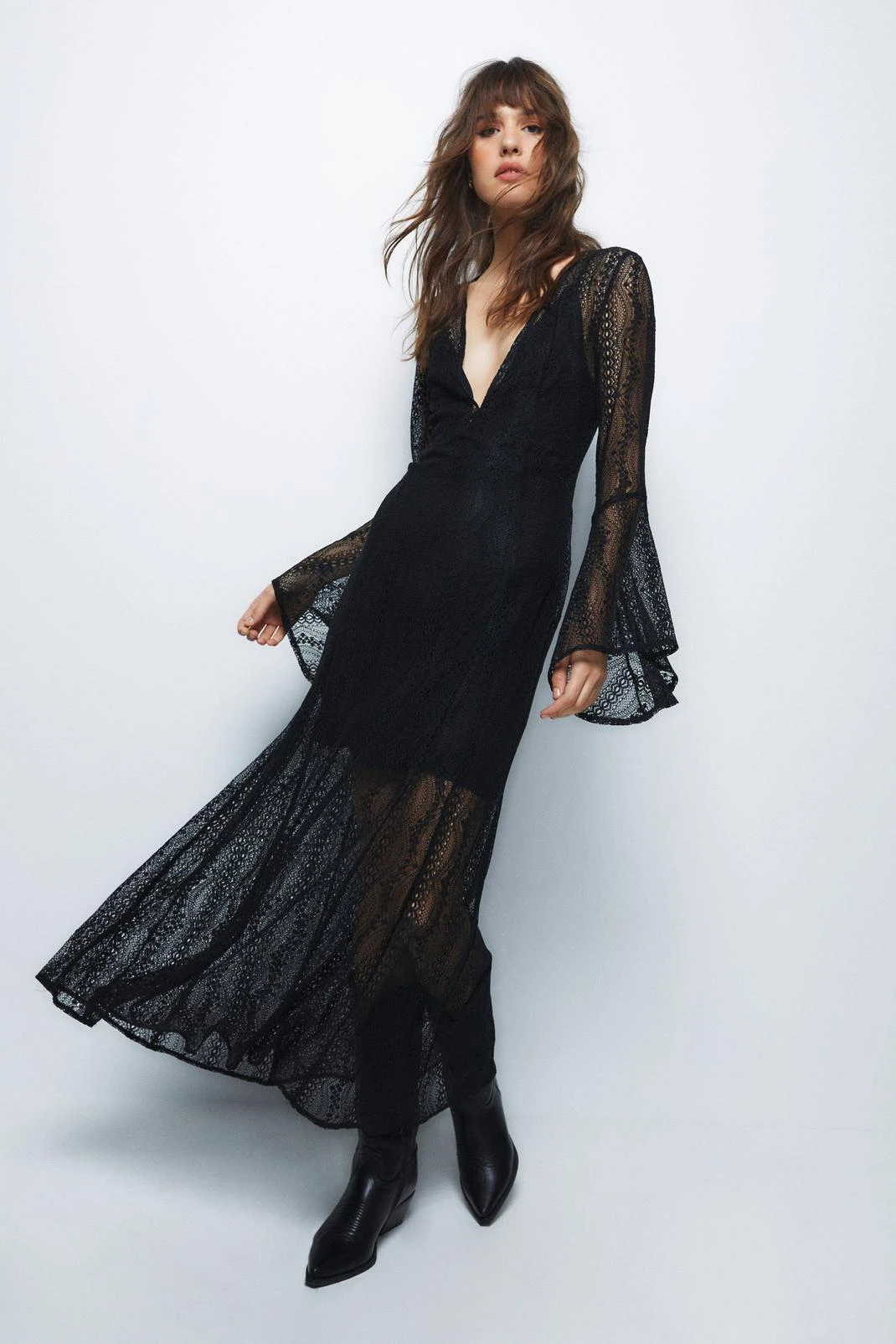 Lace layers. Our intricate lace plunge maxi dress looks great with boots or sandals, and carries you seamlessly from sunrise to sundown.