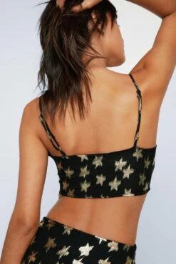 Sunny days ahead. Feel sunshine ready in our crop top, with a flattering cropped length, a stellar deep V neckline, and sparkling star details. Pair it with the matching separates for a look that will take you seamlessly from the poolside to the bar.