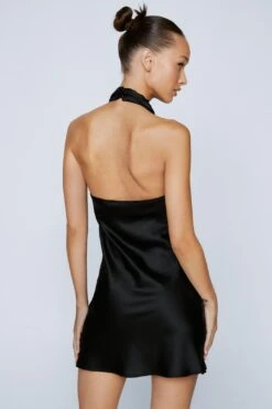 - Petite Satin Cowl Halter Neck Mini Dress