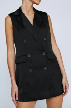 Vest intentions. Feel confident in our mini dress, made in a high quality tailored design, with a classic vest style and a flattering straight fit. Pairs well with strappy heels for an elevated look that will take you anywhere from party nights to date nights.