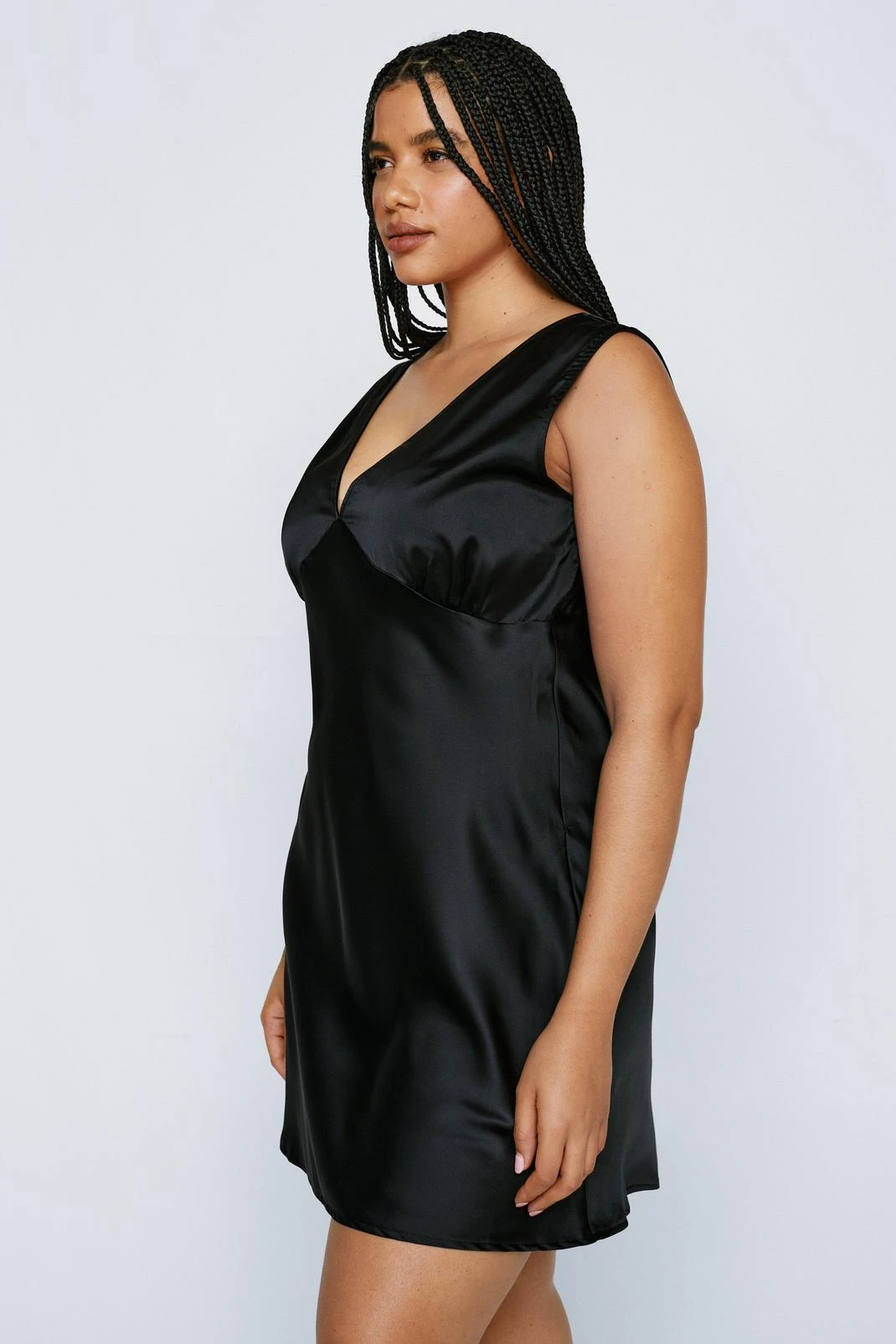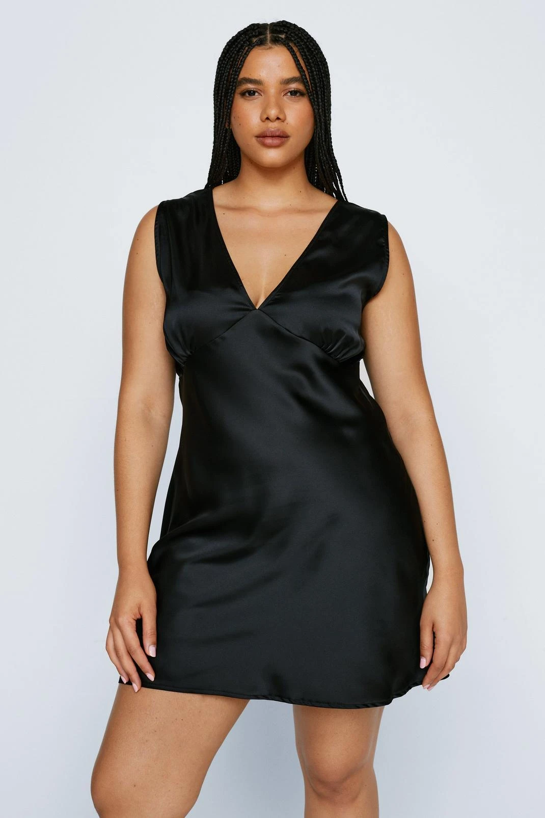 Smooth moves. Our satin V neck mini dress looks great at the bar and on the dancefloor.