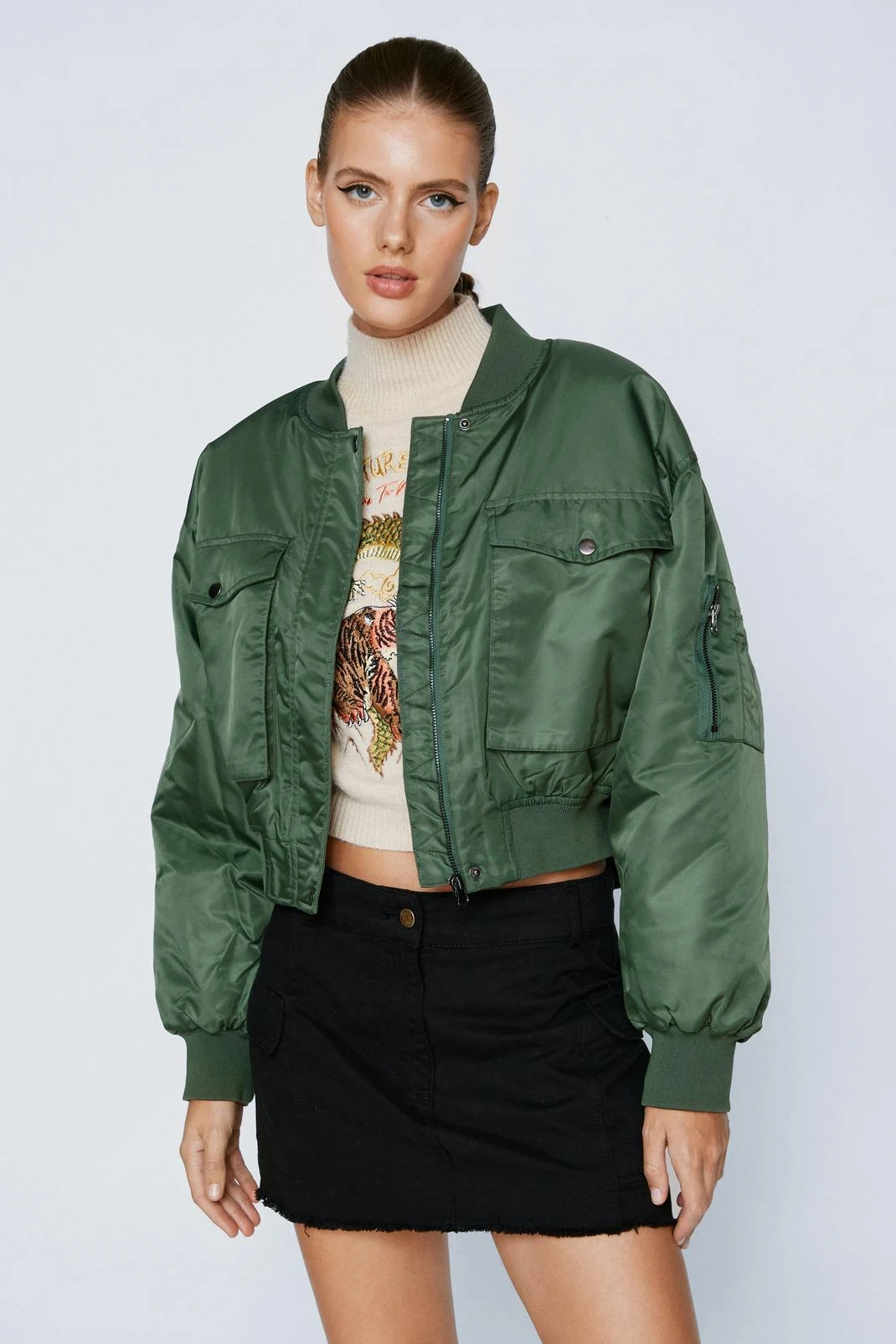 Layer up. Feel confident in our bomber jacket, with a comfortable relaxed fit, pocket features, and a thick, padded fabric. Pairs well with jeans and cargo pants for an interseasonal look that will take you anywhere from coffee runs to brunch dates, to an extra layer on dinner dates and happy hour nights.