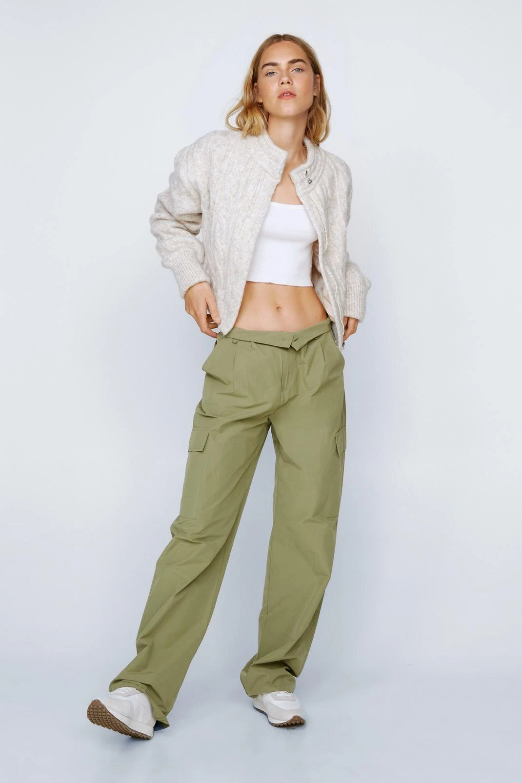 Getting cozy. Style with a crop top, cargo pants, and sneakers when things start to get chillier.