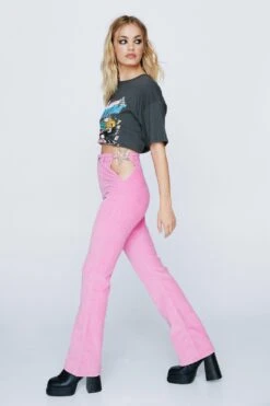 Down here. Feel fierce in our flare pants, made in high quality denim fabric, with unique star details in the hips, and an ultra flattering flared fit. Style with a crop top or blouse for an elevated look, perfect for parties, bachelorette nights, festivals, and upcoming occasions.