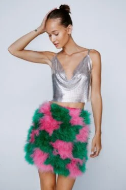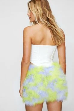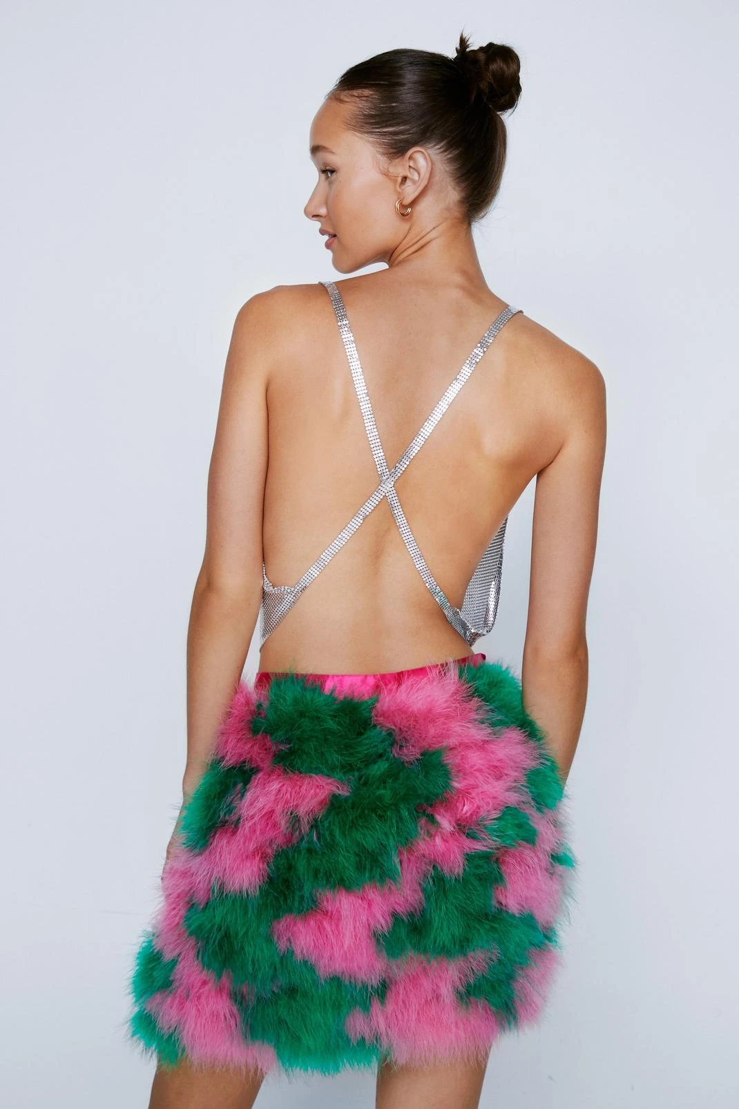 Ruffle those feathers. Elevate your skirt collection with this premium quality check feather skirt. Destined for dancefloors, team with corset tops, or the matching cami top.