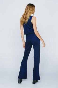 Metallic dreams. Our metallic knitted flare pants pair well with the coordinating vest for a matching moment.