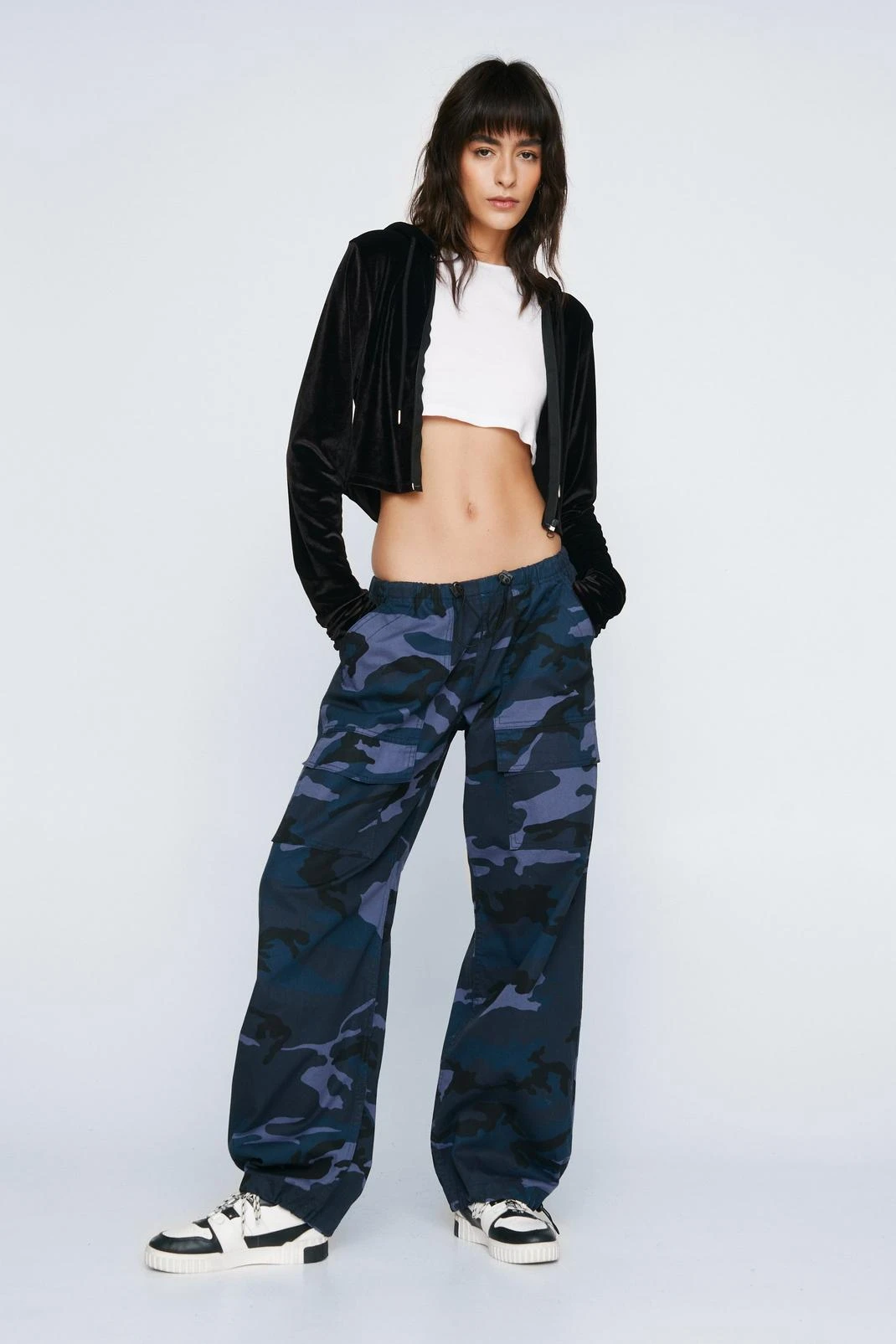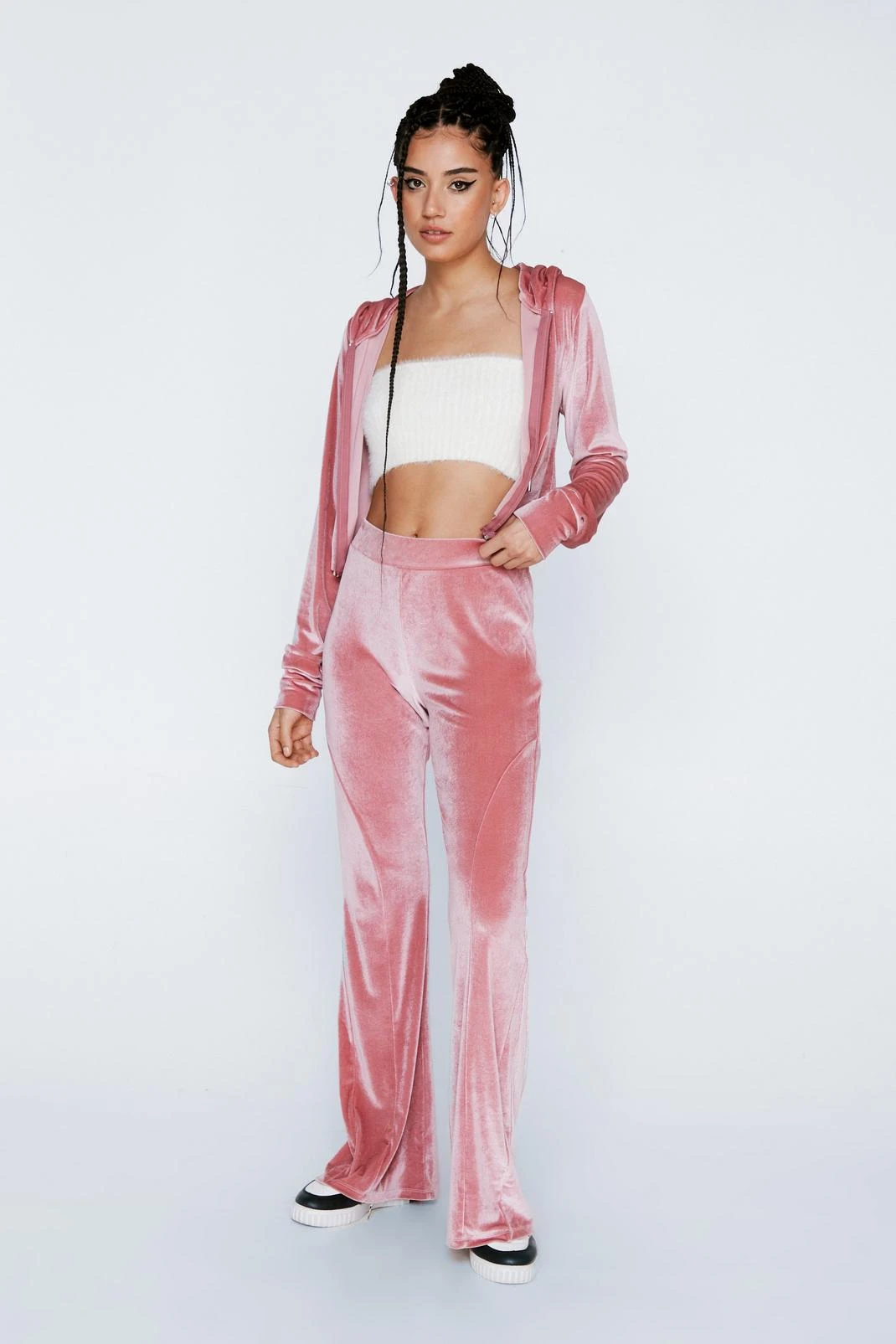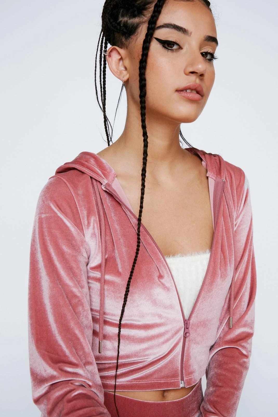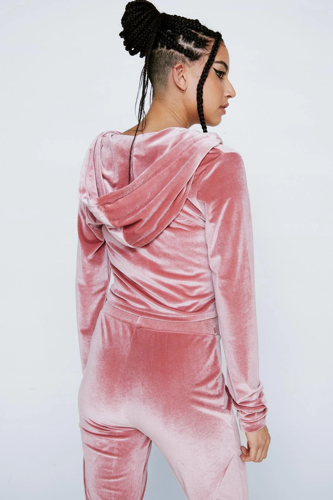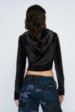 Lounge in this. Our cropped velour hoodie is perfect for cozy days in.