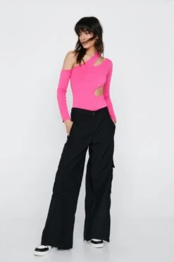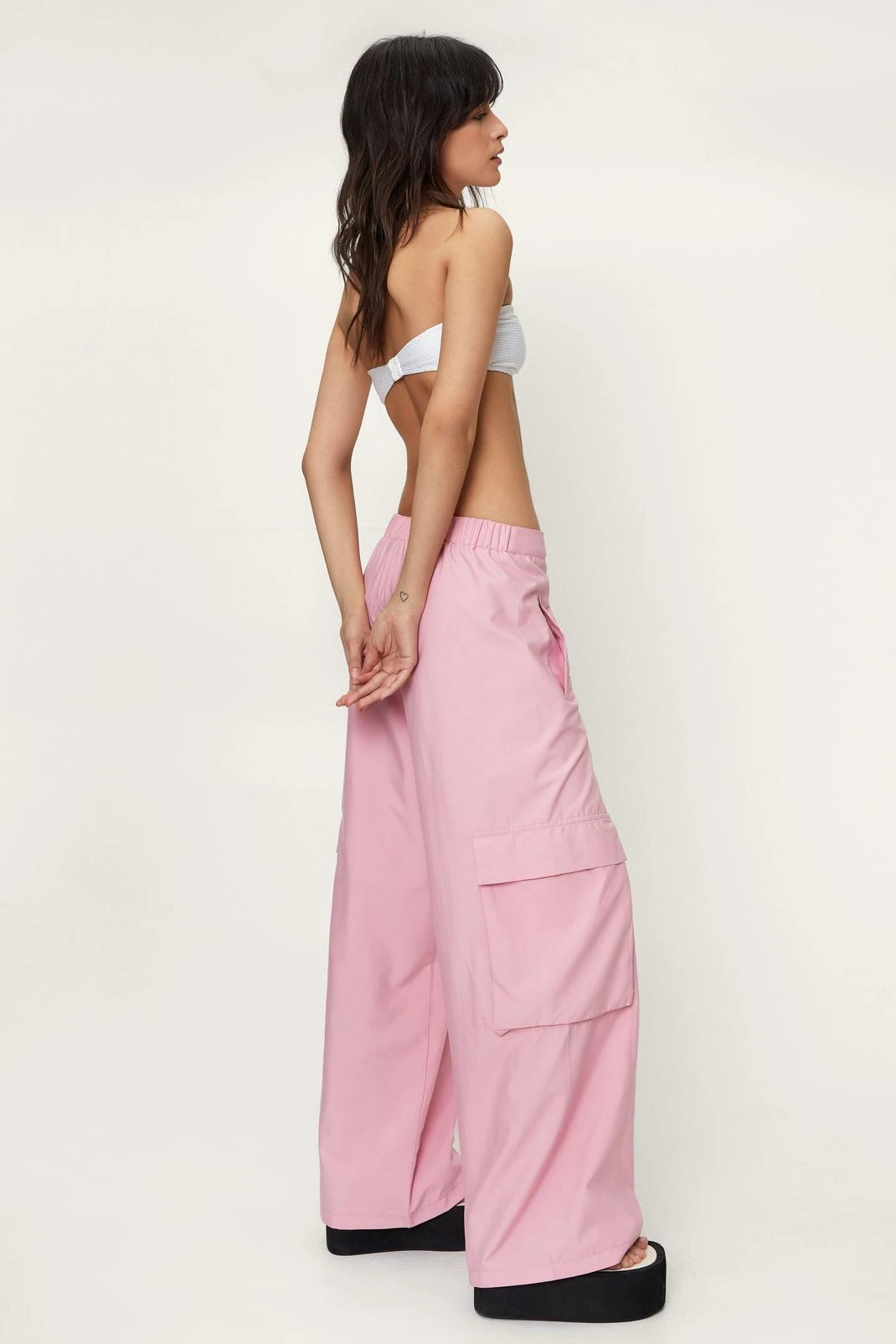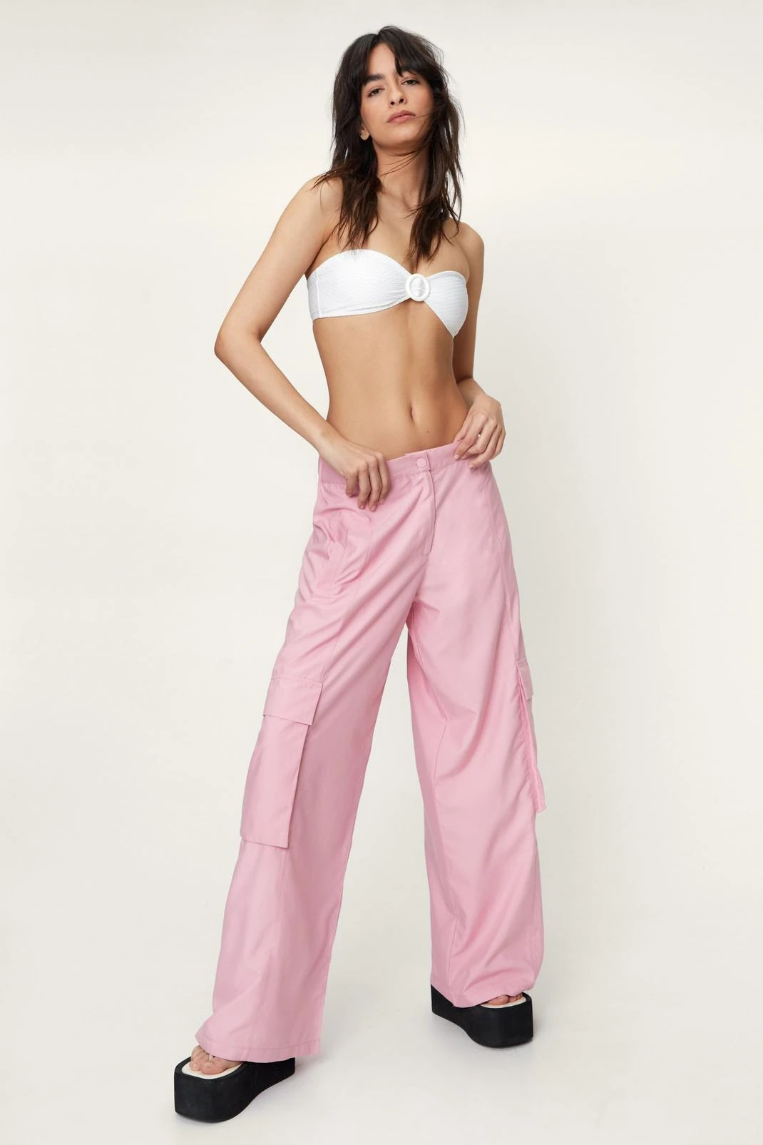 - Wide Leg Pocket Detail Nylon Cargo Pants