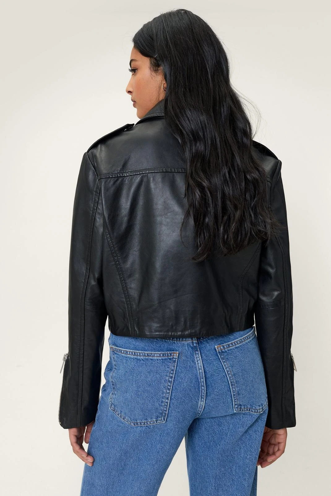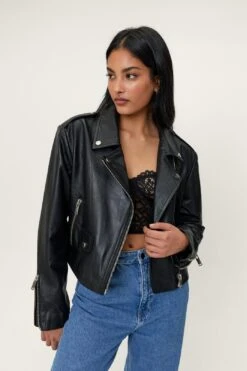 - Real Leather Cropped Biker Jacket