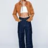 Closet icons. This jacket comes in a supple faux leather and features a loose fit, cropped silhouette, transitional long sleeves, notched lapels, asymmetric zip pockets, and flap pockets with snap button closures. A transeasonal closet classic to see you through season to season. Great for styling with sleek satin mini dresses, crochet separates, and staple straight leg jeans.