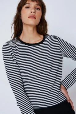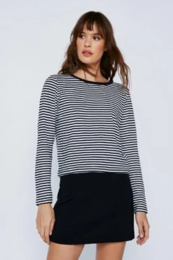 Build your basics. Our long sleeved stripe t-shirt looks great with leather shorts or pants.
