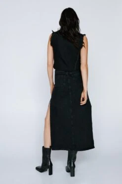 Let the legs out. Feel cute when you step out in our midi skirt, made in a classic denim fabric, with pockets and a cheeky side split that will catch eyes. Pairs well with graphic t-shirts or sweatshirts and boots for interseasonal wear and elevated daytime looks.