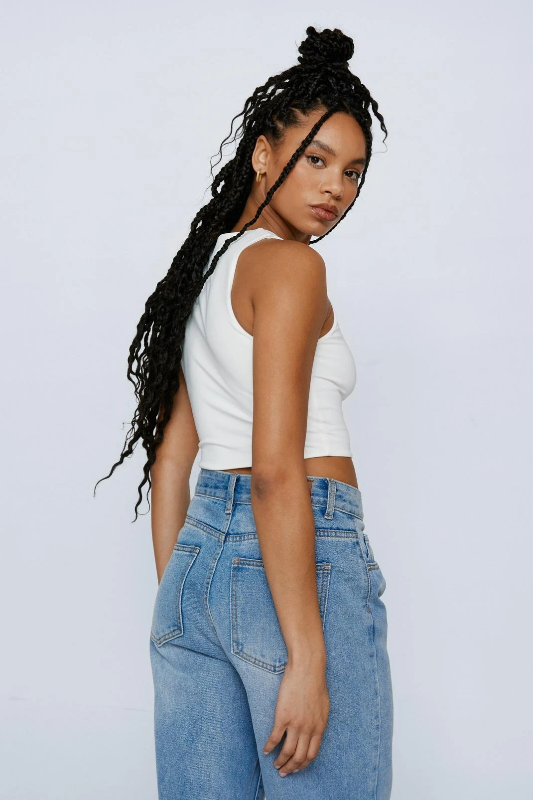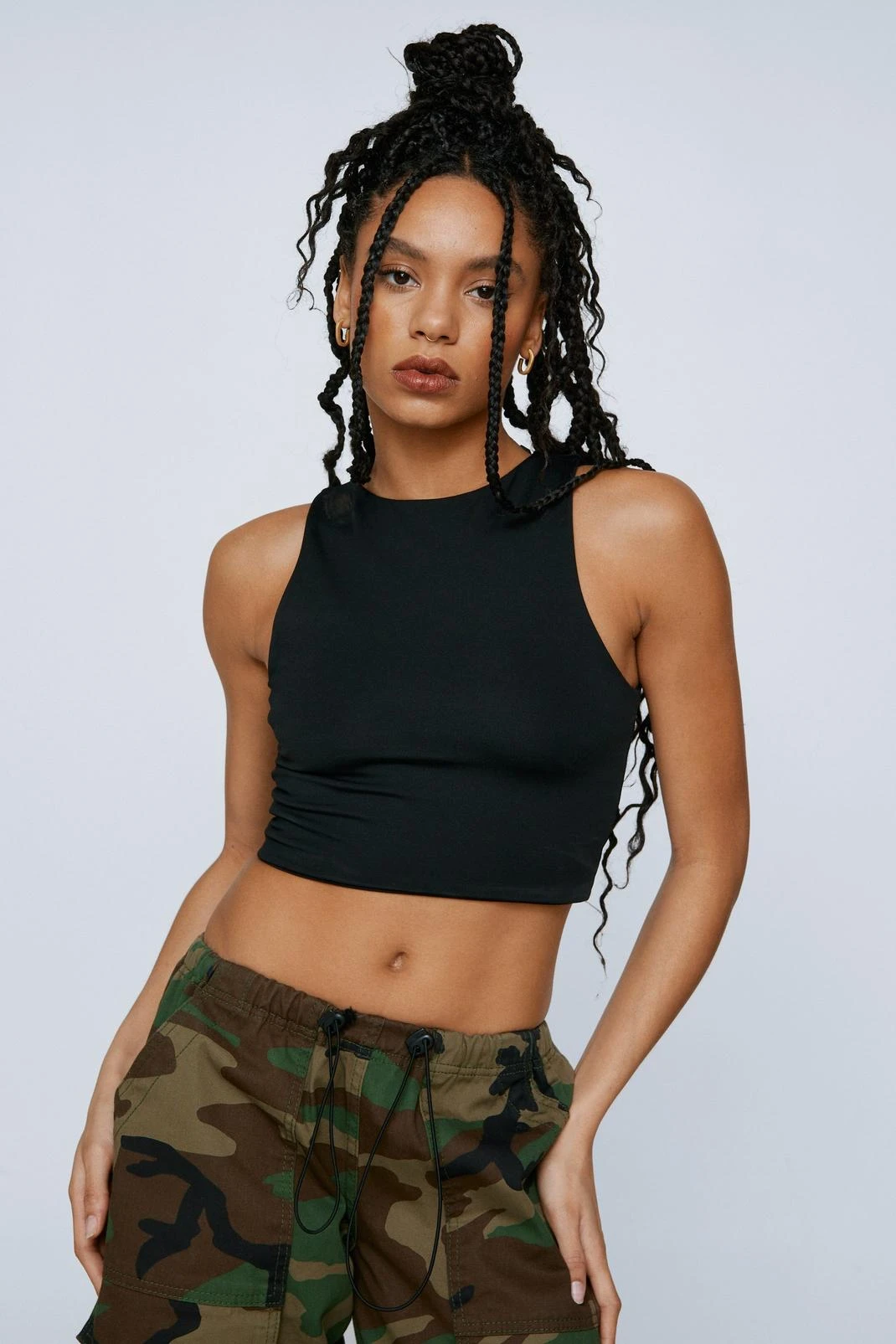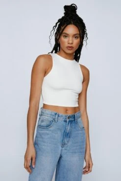 Stepped up staples. Feel ready for anything in our tank top, in a high quality opaque fabric, with a slinky silhouette and a flirty cropped length. Style with jeans and sneakers for a look which will carry you seamlessly from mall afternoons to coffee dates and office days.