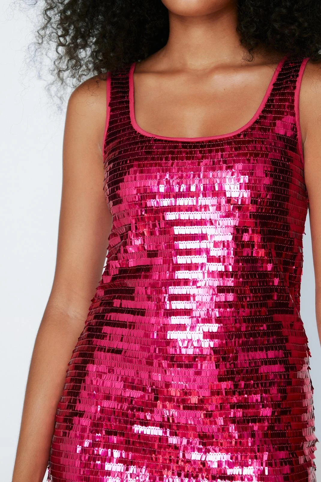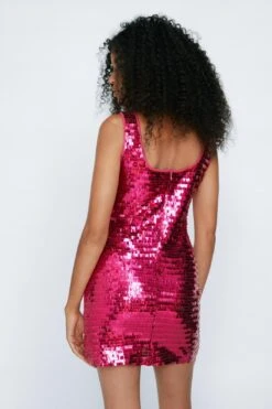 Square Strap Slit Sequin Mini Dress