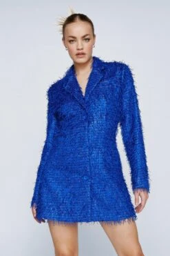 Tassel Cinched Waist Tailored Blazer Dress