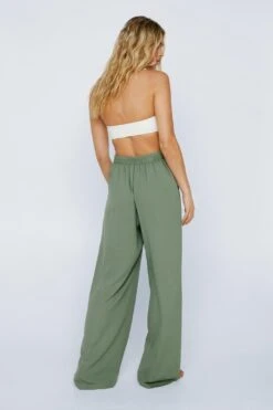 Get a little dressed up. Feel fierce in our wide leg pants, with an ultra flattering wide leg fit, pleat detailing, and a easy pull-up design. Pairs well with crop tops and bralettes for a look that will take you anywhere from vacation nights to office days that turn to dinner and drinks.