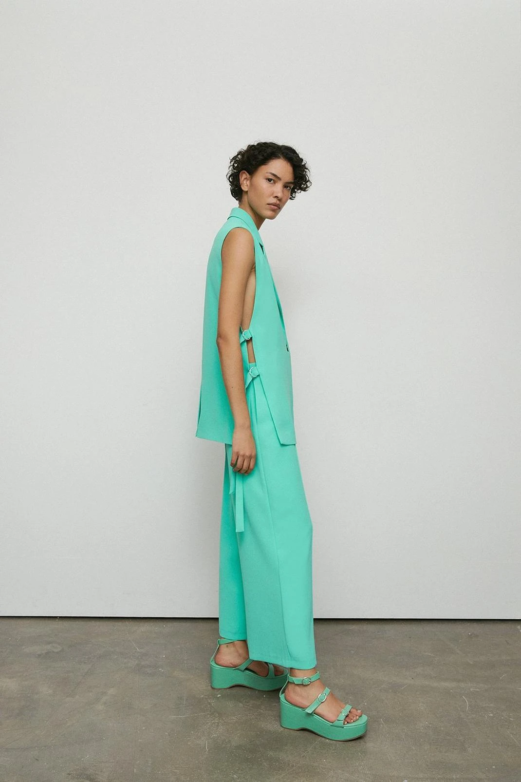 - Warehouse Tie Side Single Breasted Sleeveless Blazer