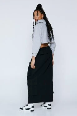 Skirt season. Our maxi cargo skirt will have you feeling ready to seize the day, with its multiple pockets and zip front. Pairs well with a crop top and casual days out with the girls.