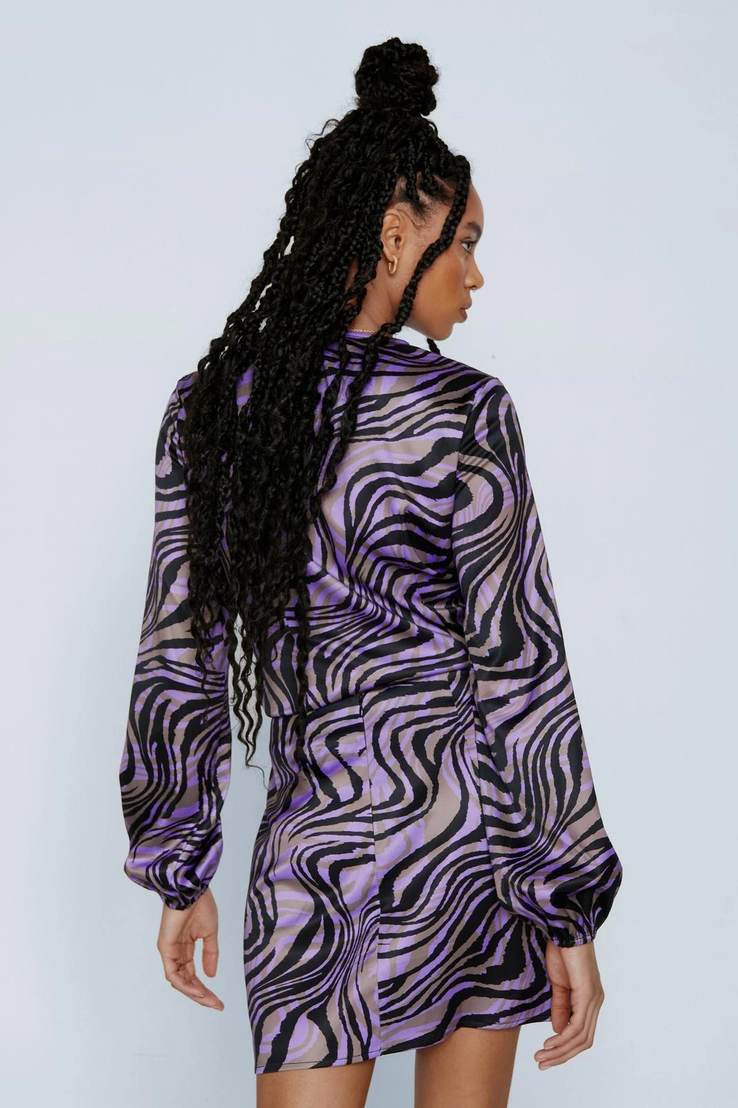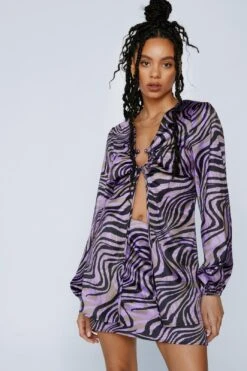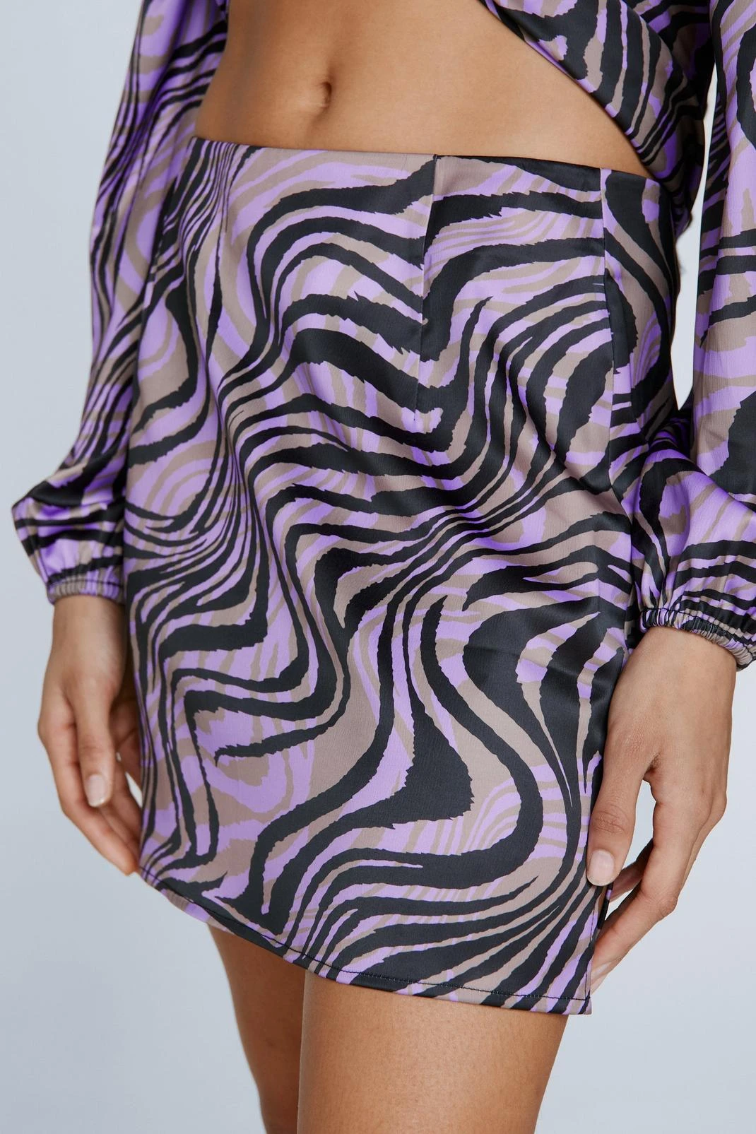 Hear her roar. Feel fierce in our mini skirt, with an ultra flattering straight silhouette, as well as a fun zebra pattern with a unique wave effect. Pairs well with the matching blouse, and strappy heels or cowboy boots for an elevated look that will take you anywhere from parties and happy hours to upcoming occasions.