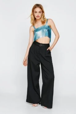 - Wide Leg Pants with Buckle Detail